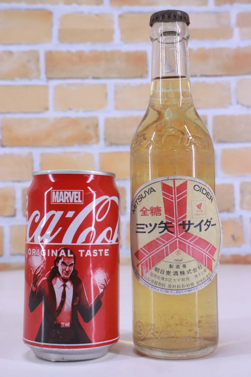 > レトロ! みつ矢サイダー 未開栓 長期保管品 全糖 MITSUYA CIDER 朝日麦酒株式会社 340ml 昭和レトロ 変色傷み有■(F9976)