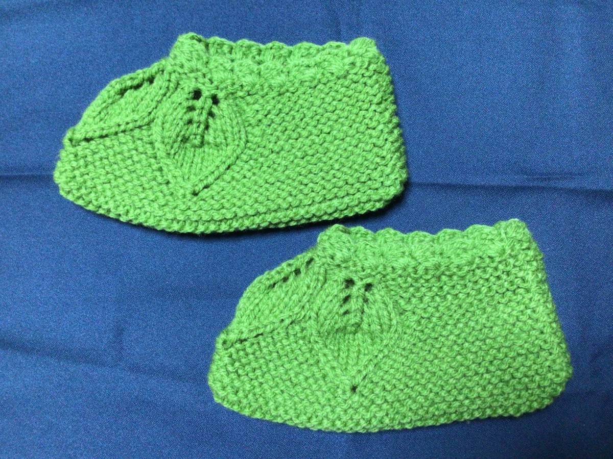 - 【編4】手編みルームシューズ(リーフグリーン)ハンドメイド 毛糸 ルームソックス 靴下カバー フットカバー 部屋履き 室内履き