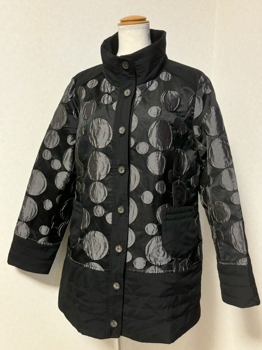 > ■ 美品 ChamisDepo ジオン商事 異素材切り替え レディース アウター ジャケット コート ブルゾン 42号 13号 XLサイズ ドットパッチワーク