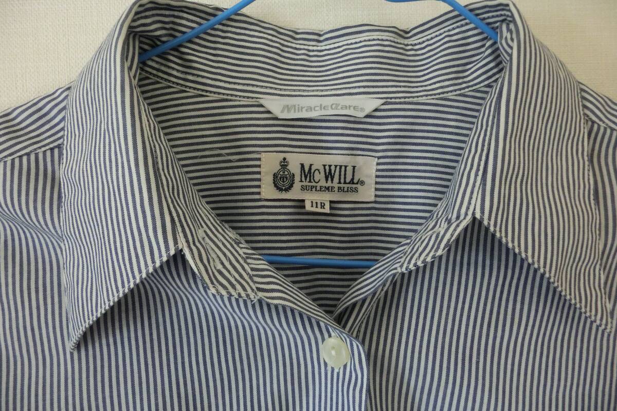 - Mc WILL マクウィル ストライプ柄 長袖ブラウス 婦人服 水色 サイズ:11R 初春シーズンイン お薦めお品 送付¥185