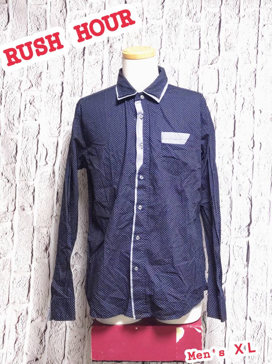 - ★送料無料★ RUSH HOUR デザインシャツ ラッシュアワー 柄シャツ ドット柄 レイヤード メンズ 長袖シャツ XL
