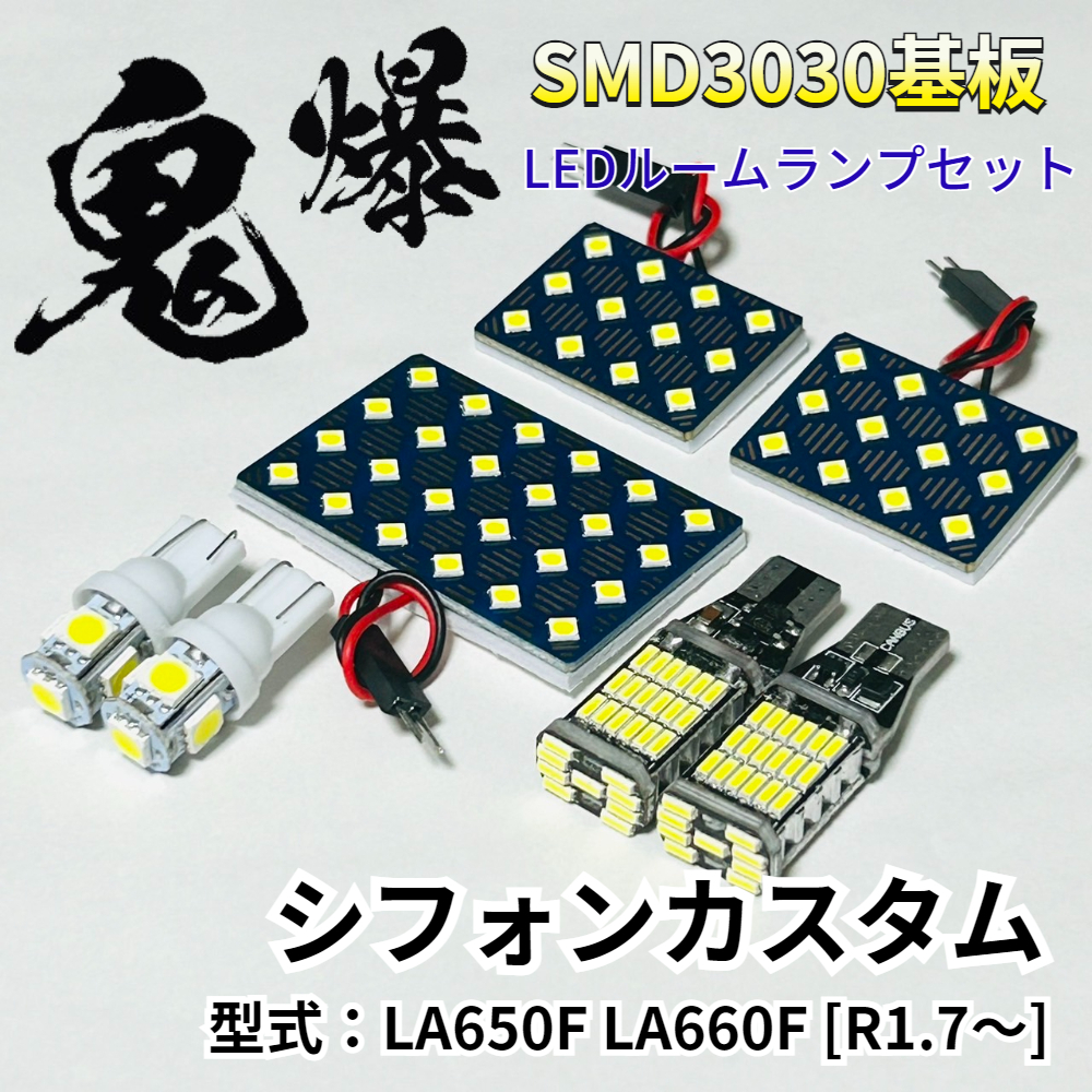 > シフォンカスタム LA650F LA660F スバル LED ルームランプ バックランプ ナンバー灯 セット 鬼爆基板 SMD3030 ルーム球 パーツ 車検対応