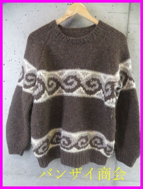 > 030m36◆良品です◆ハンドニット◆手編み ノルディック ウールニットセーター/カウチンニット/カーディガン/フェアアイル/ユニセックス