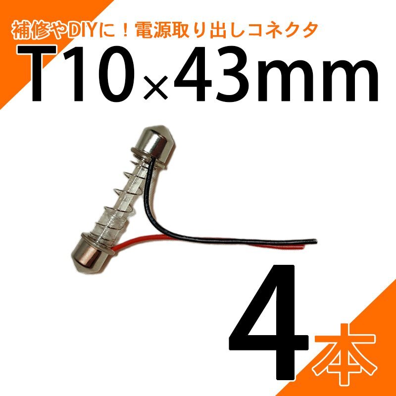 - T10×43mm 電源取り出し コネクタ 4個セット コネクタ 12V 24V 直結 補修 増設 DIY ハーネス ルームランプ 室内灯 ルーム灯 ルーム球