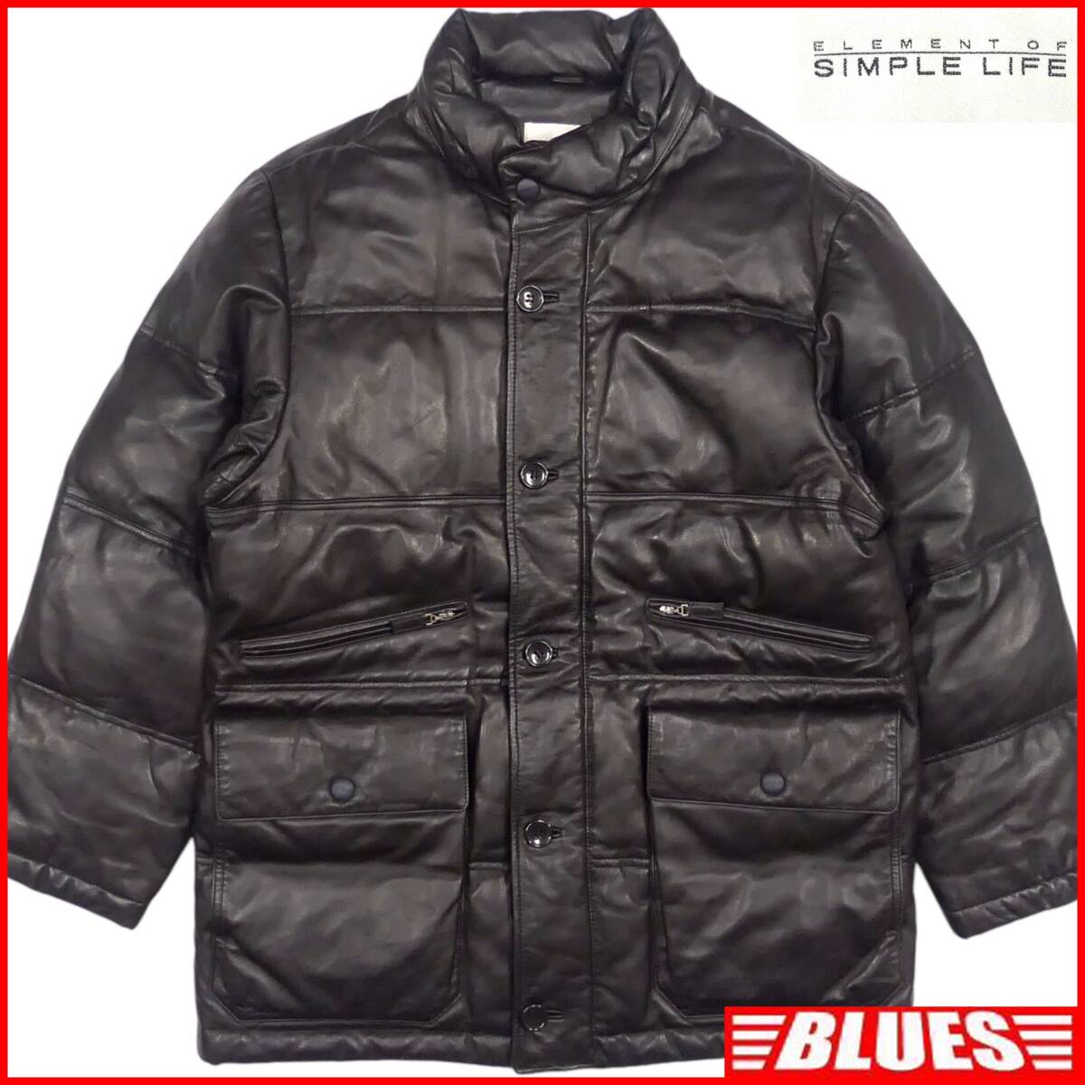 - 即決★SIMOLE LIFE★メンズ M オールレザーダウンジャケット シンプルライフ 黒 本革 アウター皮 ダウンコート 革ジャン 上着 ジャンパー