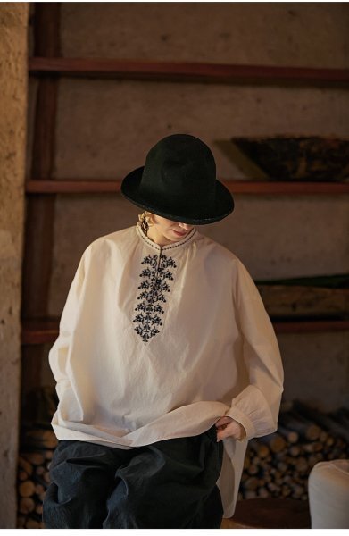 - yq 2410 チュニック 大人可愛 刺 高質 綿100% ゆったり アンティーク風 トップス