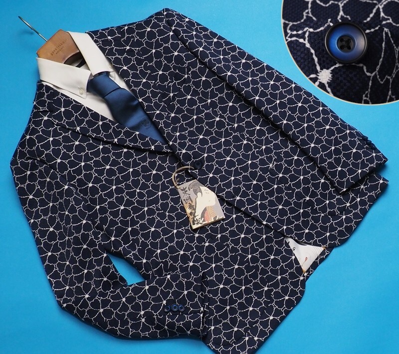 > 新品10.7万円 大手百貨店扱い 秋冬 完全日本製 [東洲斎写楽] 浮世絵裏地 ホップサック×花柄 ジャケット/ブレザーS(AB4)紺(I) 3250260