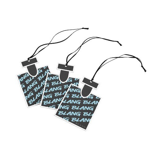●香水ボトルのシルエット・トレンドのモノグラム柄吊り下げ芳香剤。3個パック。