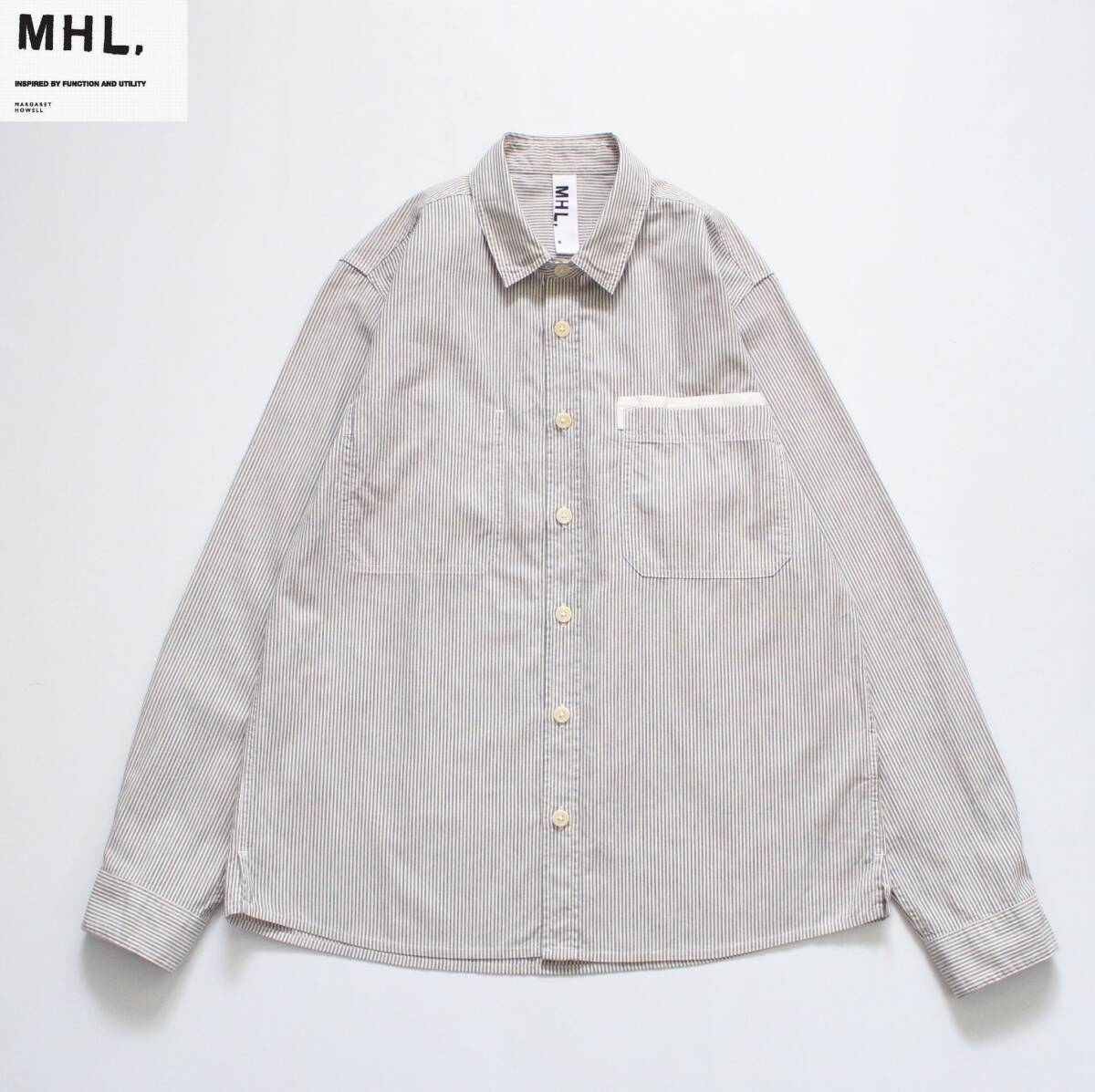 - 【 MHL.MARGARET HOWELL マーガレットハウエル 】コットン/リネン 長袖 ワークシャツ M 綿/麻 596-150364 ヒッコリー ストライプ