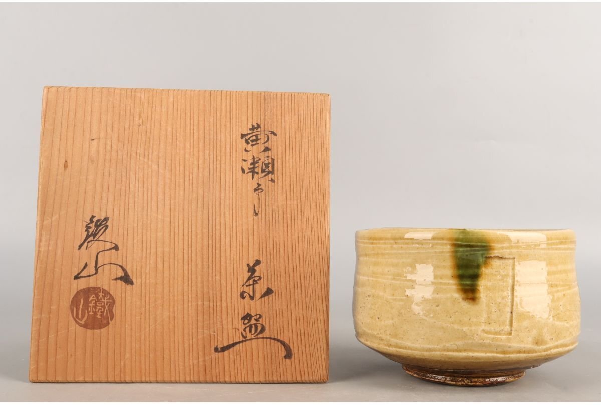 - [ギャラ藤]松本鐵山 造/黄瀬戸茶碗/共箱/B-1860 (検索)骨董/鉢/茶道具/煎茶道具/煎茶碗/抹茶碗/割烹/和食/料亭/懐石