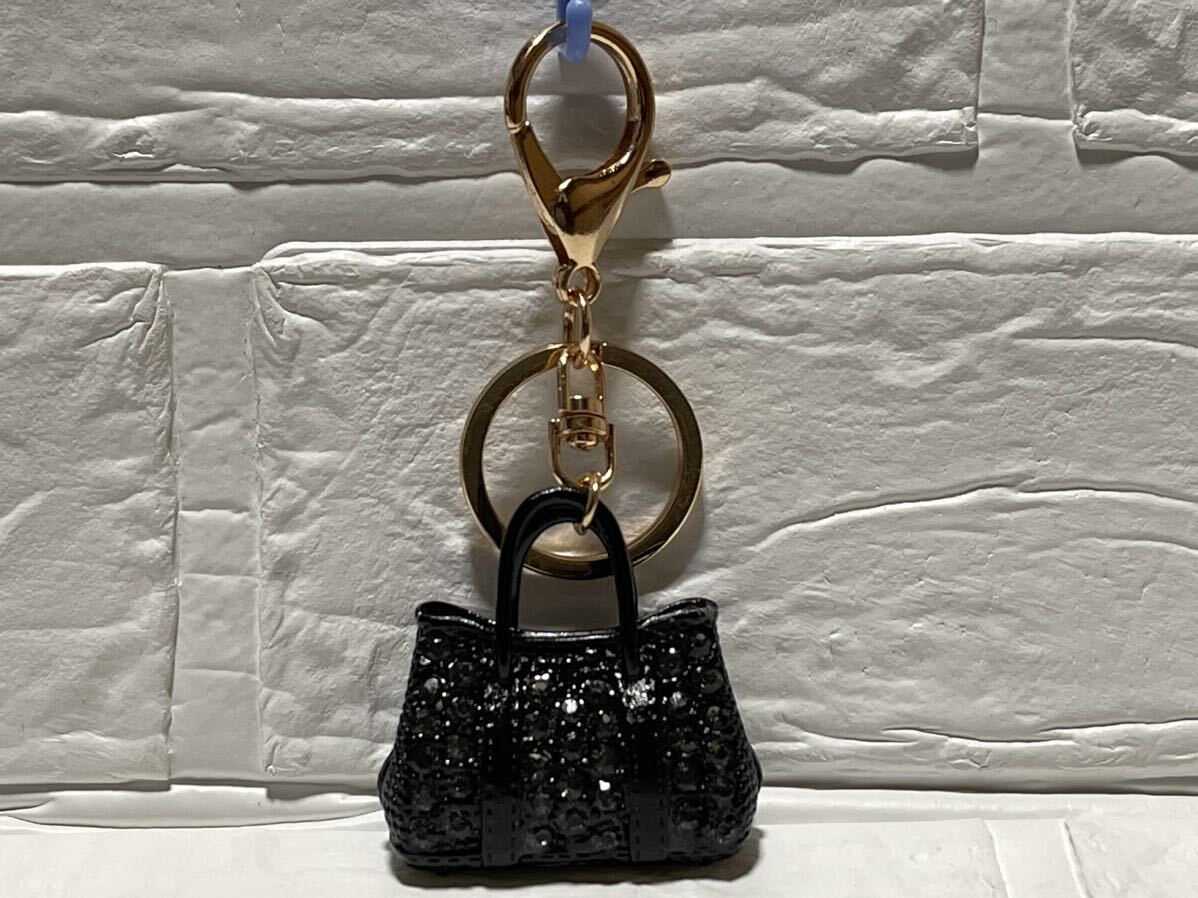 - 新品☆バッグ型キーチェーン キーホルダー バッグに付ける雑貨 ラインストーン ブラック 黒色 バッグチャーム ファッション小物⑥