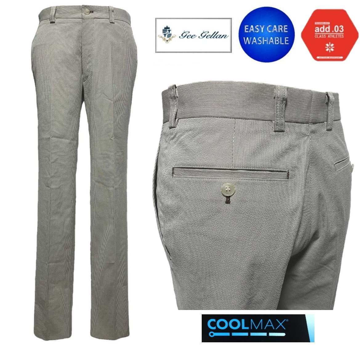 > 裾上げ無料 GEEGELLAN ジーゲラン コードレーン ノータック ストレッチパンツ モカベージュ ウエスト 95cm 吸汗速乾接触冷感 COOLMAX