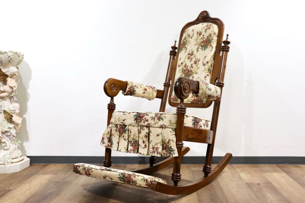 - GMHN239○Dainichi 西洋 アンティーク調 ロッキングチェア 揺り椅子 フットレスト ファブリック 花柄 レトロ カントリー ノスタルジック
