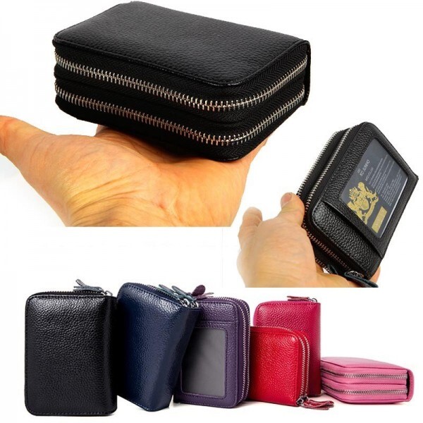 - カード入れ カードケース コンパクト クレジット 財布 レザー RFID 小銭入れ 定期入れ ダブルポケット 本革 ラウンドファスナー