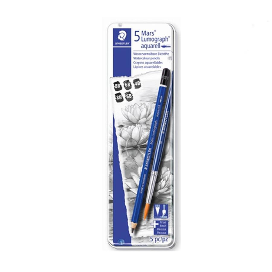 - 【非売品のオリジナル鉛筆補助軸プレゼント】STAEDTLER 鉛筆 マルス ルモグラフ アクェレル 水彩鉛筆 メタルケース入りセット/100AG6