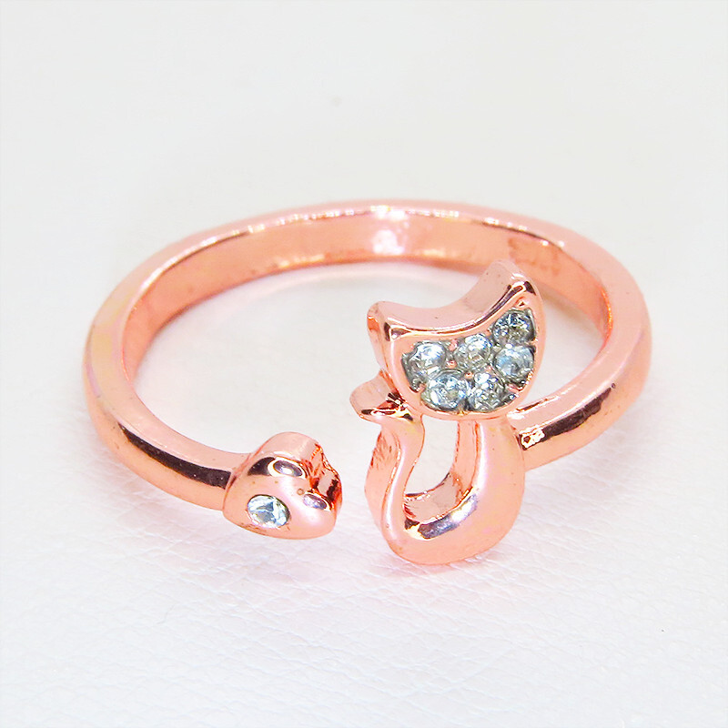 - ピンクゴールド 大人可愛い猫のシルエットモチーフのリング キュービックジルコニア シルバー925PLD フリーサイズ