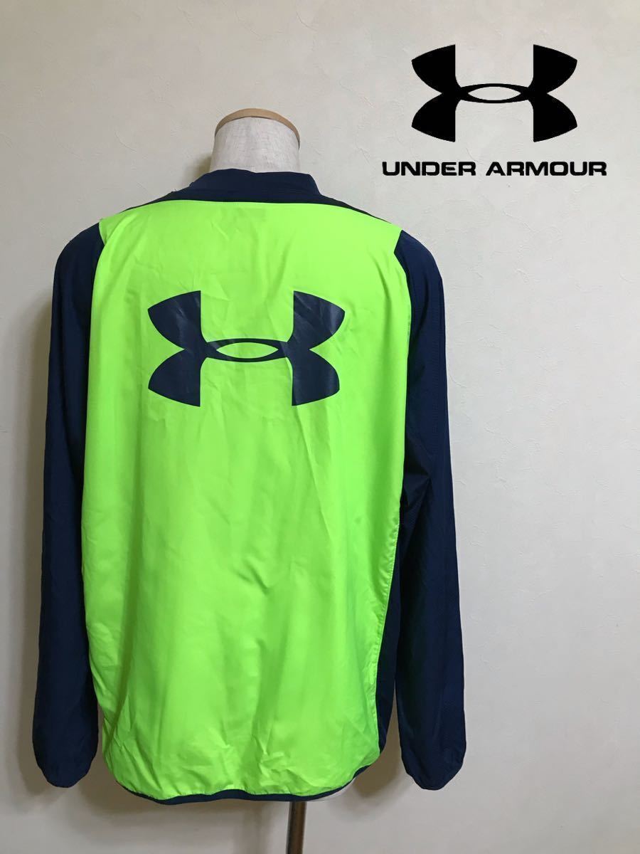 > 【美品】 UNDER ARMOUR アンダーアーマー ビッグロゴ サッカー 切替し トレーニング ウェア トップス サイズXXL 長袖 MSC1426 ネオンカラー