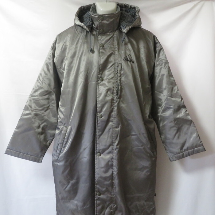 - 古着 メンズO adidas/アディダス 裏ボア ベンチコート スポーツ カジュアル 防寒 シルバー 345857