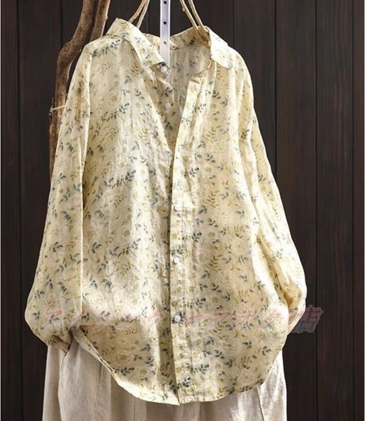 - ☆新品秋 ゆったり 花柄シャツ 大きいサイズ ナチュラル 総柄 綿麻 長袖 シャツブラウス 着やせ トップス 黄