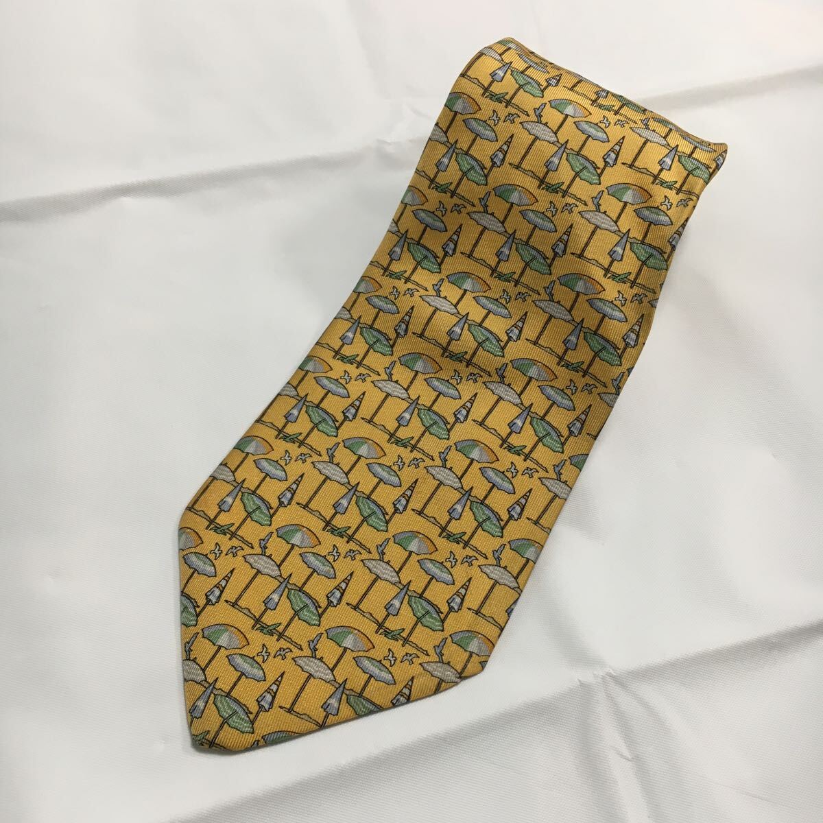 - 送料一律430円 美品 イタリア製 Salvatore Ferragamo ネクタイ イエロー マリン アニマル シルク100% サルヴァトーレ フェラガモ