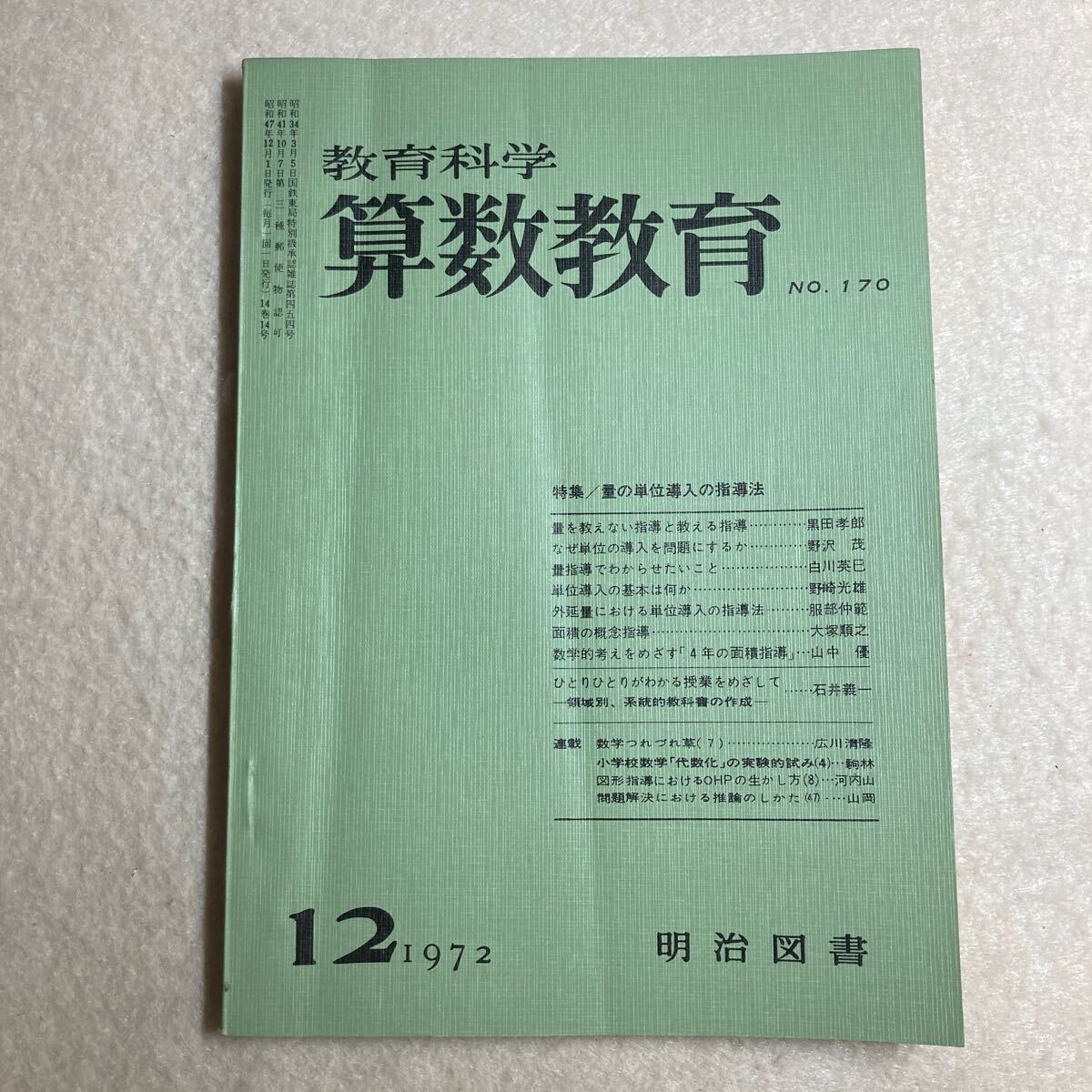 - B10☆教育科学 算数教育 1972年12月号 NO.170 量の単位導入の指導法 明治図書☆