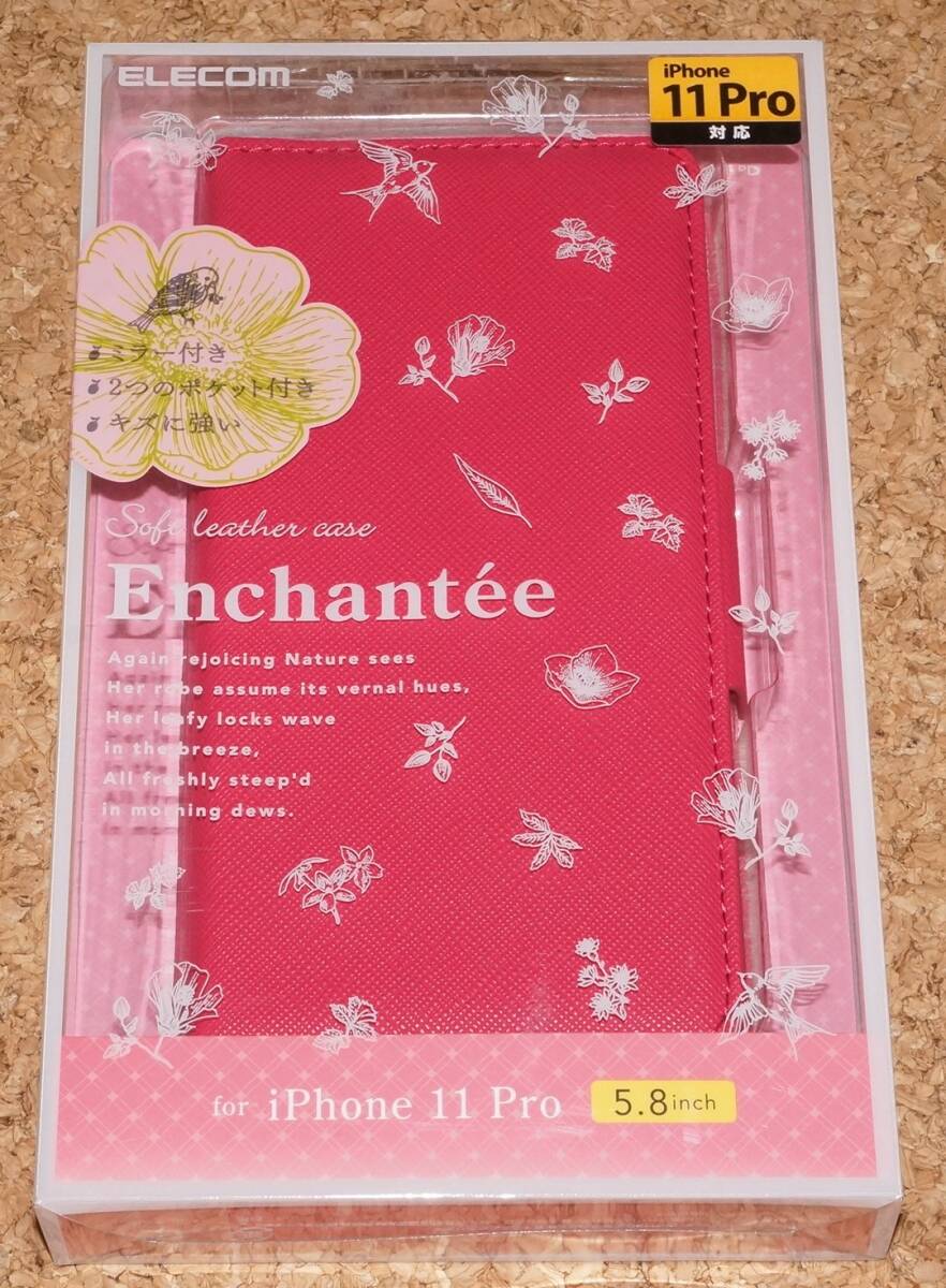> ★新品★ELECOM iPhone11 Pro レザーケース Enchantee ミラー付き ディープピンク