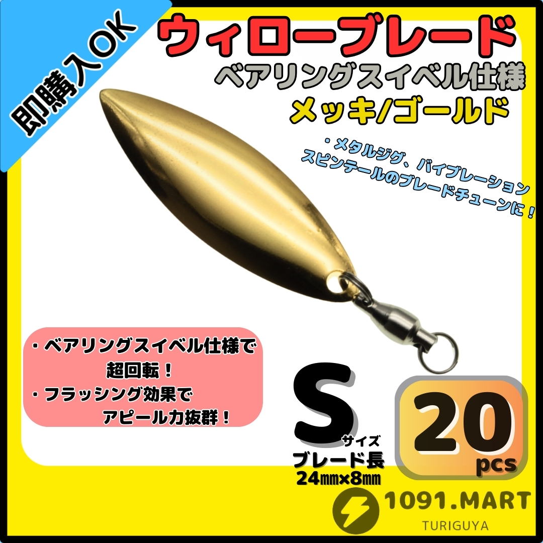 - 【送料150円】ウィローブレード メッキ/ゴールド Sサイズ 20個セット ボールベアリングスイベル付きスピンテールブレード ブレードチューン