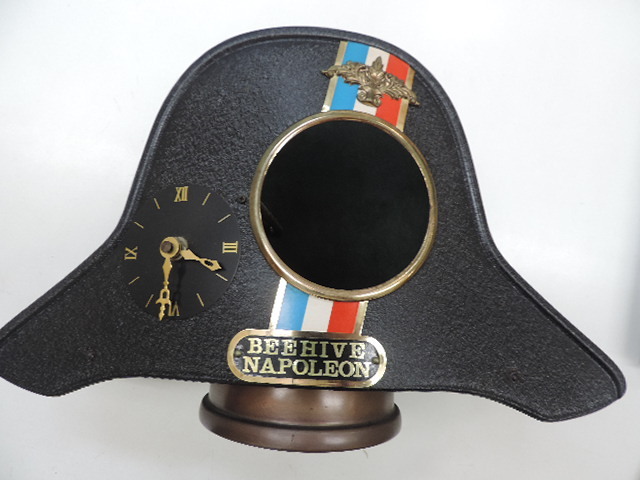 - 希少品 ★BEEHIVE NAPOLEON★ 帽子型ボトル置き・時計付(実働) 高さ:約22cm・幅:約36cm 中古品