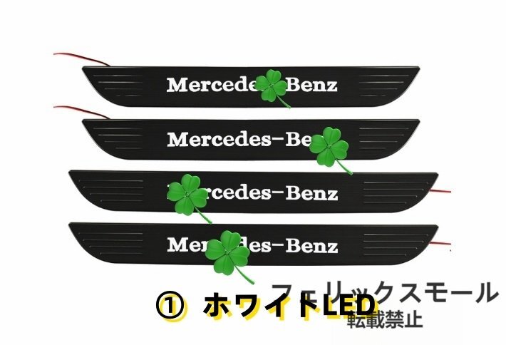 - ベンツ Eクラス W213 2016-2023年 2色選択可能 LEDスカッフ プレート外側プロテクター ステップ カバー メルセデスベンツロゴブラック