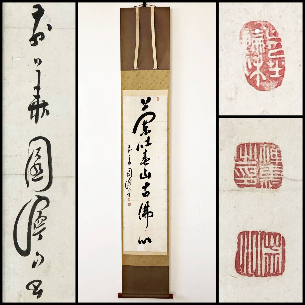 > 【真作】W243【寧山禅慧 臨済宗妙心寺469世 五字一行書『蘭吐春山佛心』】無為等/濃州山県郡岩利村の人/掛軸/墨蹟/紙本/再表具
