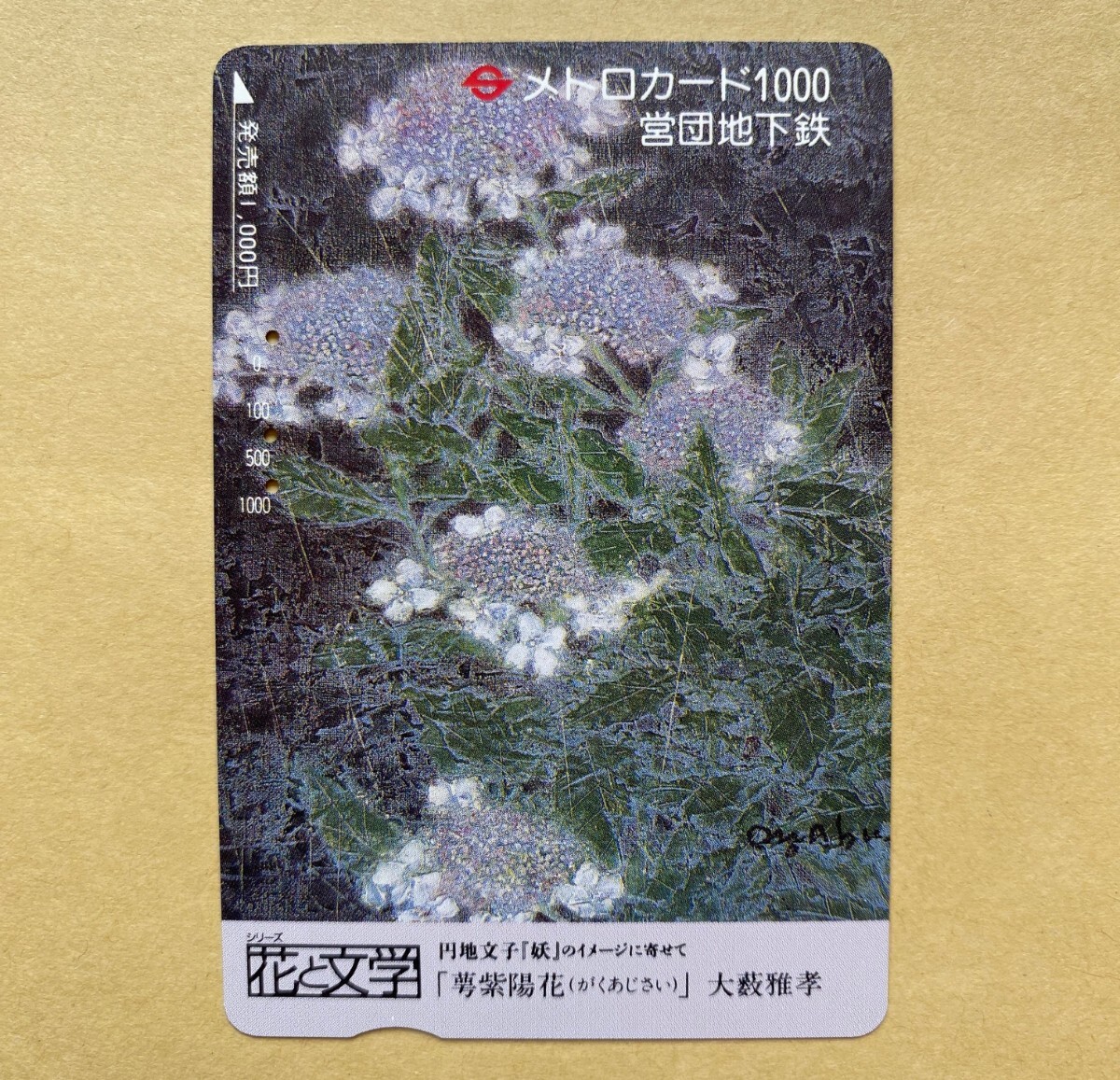 - 【使用済】 絵画メトロカード 営団地下鉄 東京メトロ 花と文学 円地文子 「妖」のイメージに寄せて 「萼紫陽花(がくあじさい)」 大薮雅孝