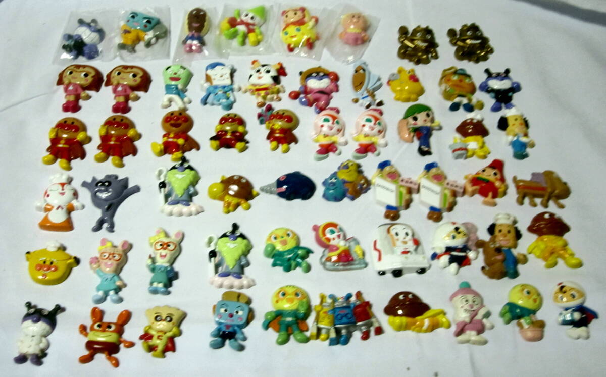 - 2)アンパンマン くっつくんです 58個 内ナイロン入り未使用6個 2.30年前の品