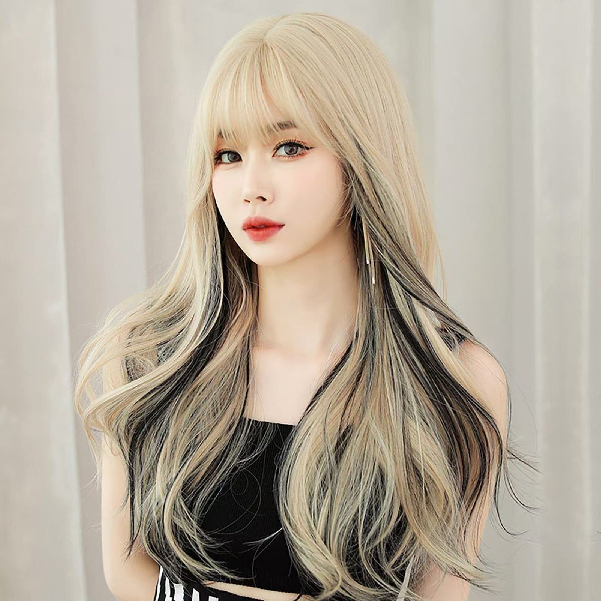 - LRM4652★ロングウィッグ ウィッグ フルウィッグ ロング 軽くカール パーマ 金髪 気分転換 バイカラースタイル変更 ネット付き