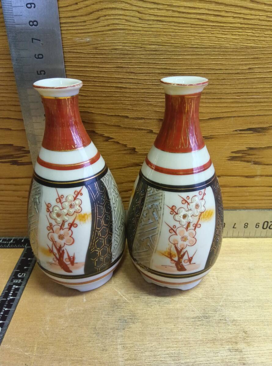 - 24110319 松竹梅柄 徳利セット2客 松柄 竹柄 梅柄 焼物徳利 昭和レトロ コレクション