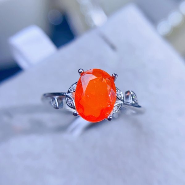 - 【証明書付き】天然火のオパールリング、女性用、6x8mm、925シルバー、サイズ調節可能、最初の入札者様は開始価格で購入可能 aa_