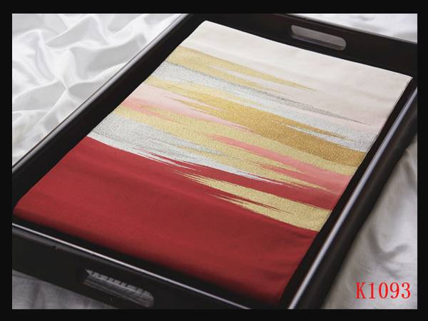 - K1093厳選逸品 爪掻き本綴れ 霞紋 紅海老茶色薄卵色 気品豊かに 正絹純金糸高級美術名古屋帯 ◇検◇簪着物袋帯帯締め