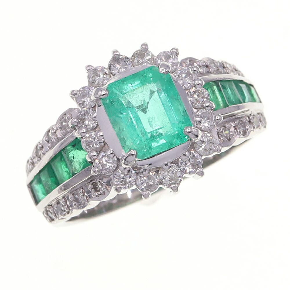 > エメラルド ダイヤモンド リング E1.09ct E0.65ct D0.53ct Pt900 12.5号 中古 指輪 ジュエリー