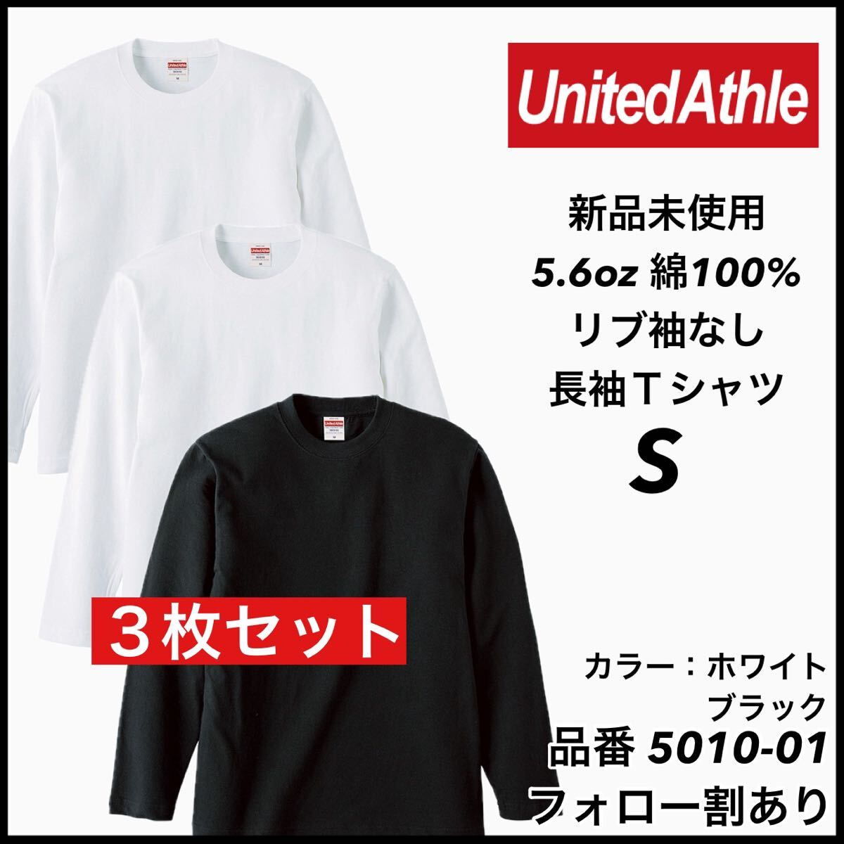 > 新品未使用 ユナイテッドアスレ United Athle 5.6oz 無地 袖リブなし 長袖Tシャツ ロンT 白黒3枚セット Sサイズ ユニセックス