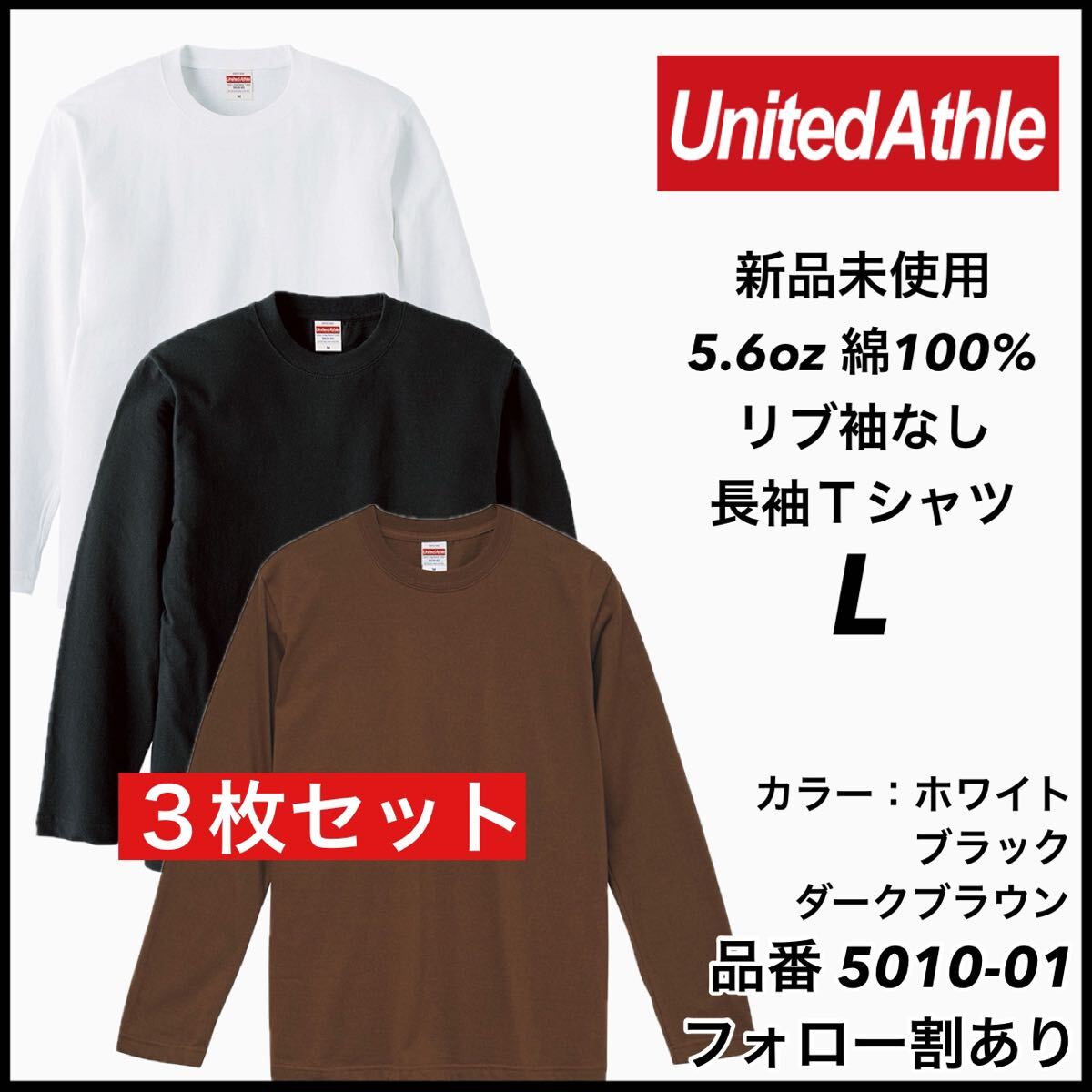 - 新品未使用 ユナイテッドアスレ United Athle 5.6oz 無地 袖リブなし 長袖Tシャツ ロンT 白黒ブラウン3枚セット Lサイズ ユニセックス