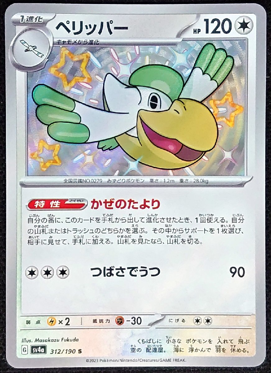 > 【ポケモンカード】ペリッパー HP120(2023年版色違い)G sv4a 312/190 S
