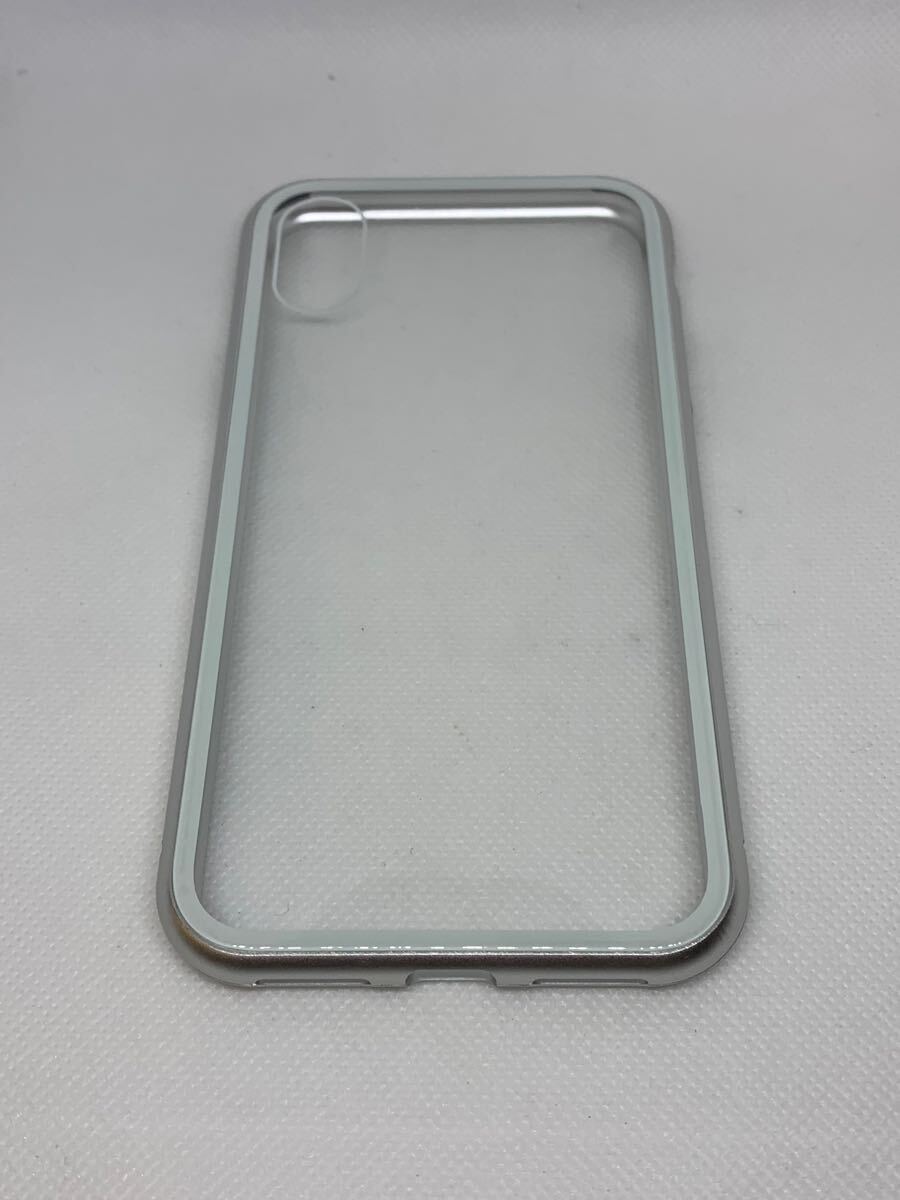 > iPhone X 用 ケース アルミフレーム ガラスバンパー シルバー 新品