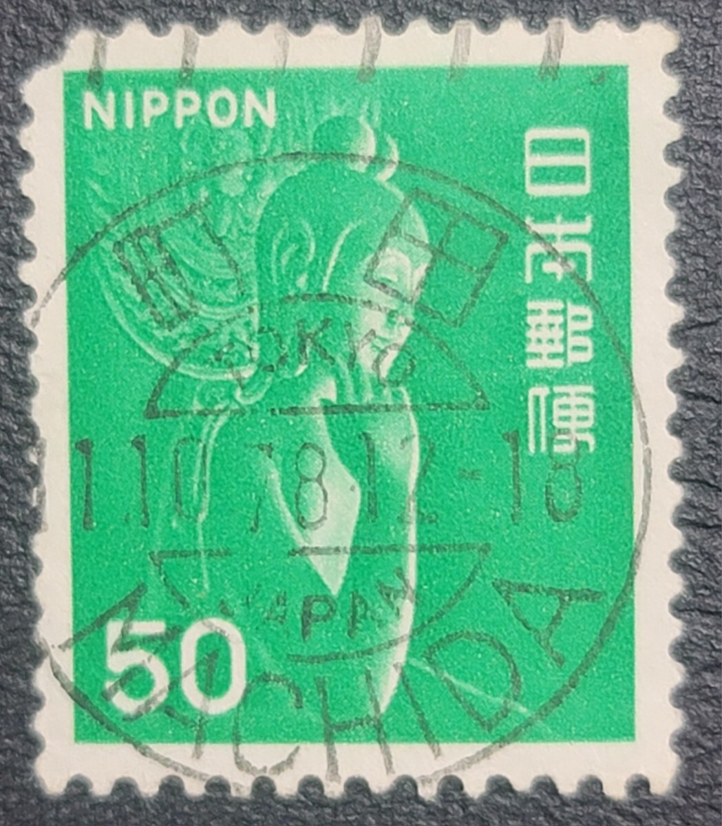 - 《日本切手 使用済》50円/緑菩薩 和欧文機械印 町田 78.10.11 満月印