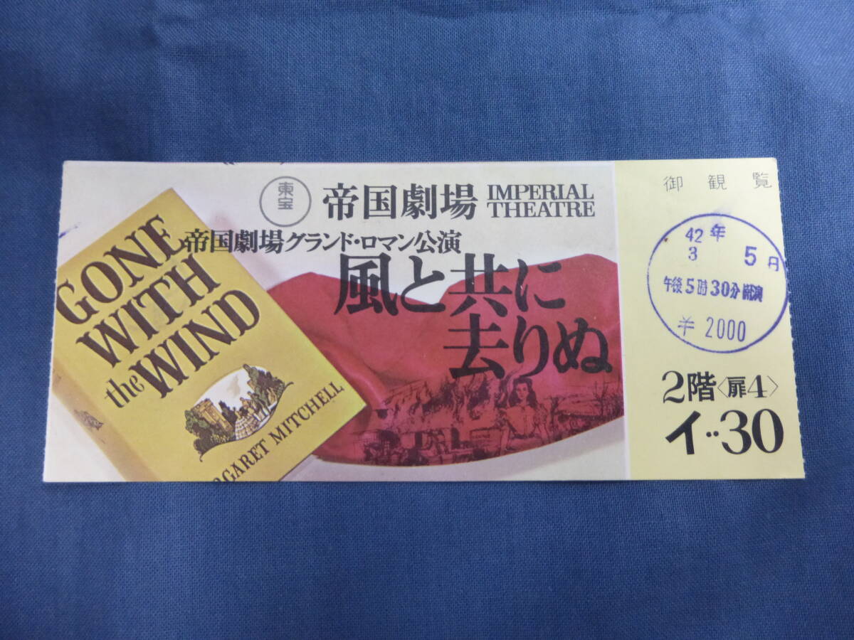 - 古い演劇・舞台公演 チケット半券26 「風と共に去りぬ」 帝国劇場 1967年 東宝ミュージカル GONE WITH the WIND