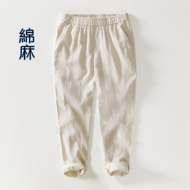 - ☆新品 リネンパンツ メンズ サマーパンツ 九分丈 チノパン ウエストゴム 紐 綿麻 パンツ スラックス カーキ 4XL選択