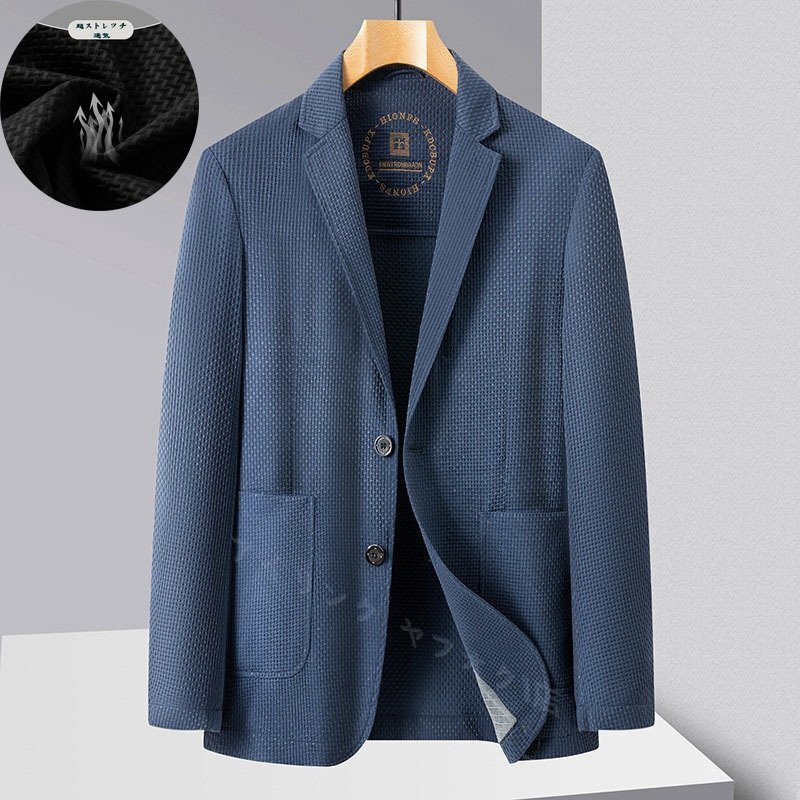 > ☆新品 テーラードジャケット スーツジャケット 超ストレッチ メンズ 夏薄め日焼け止め ブレザー ブルー 3XL選択