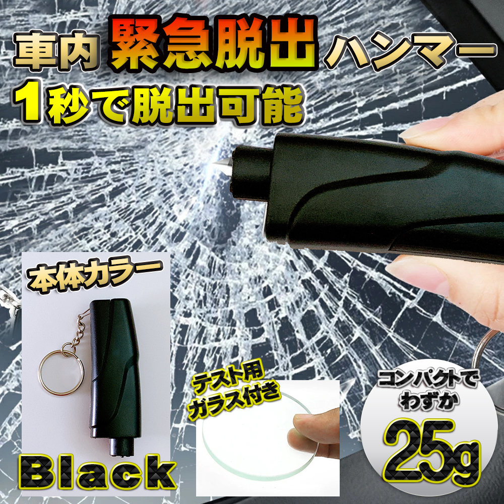 - 【ブラック】脱出 水中適用レスキューハンマー 水害対策に 緊急 脱出用 安全ハンマー 水没 車用 ポンチタイプ シートベルトカッター付