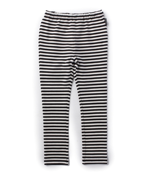 > 新品 HusHusH コットンストレッチ天竺スキニーパンツ ブラック(ストライプ) 140cm 定価2189円