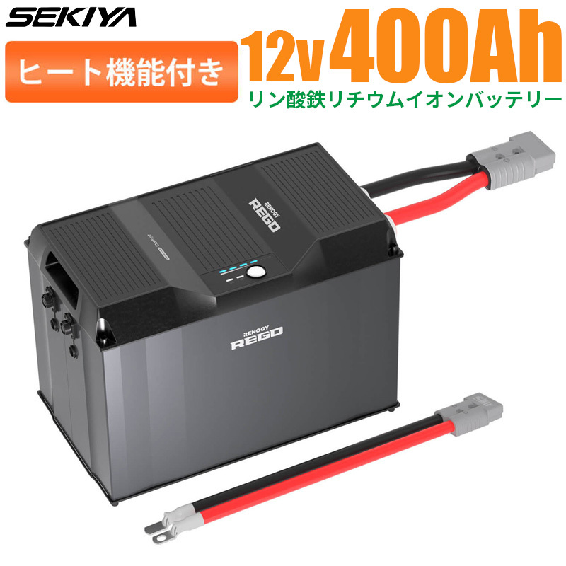 - 【ヒート機能】6000回寿命 リン酸鉄リチウムイオンバッテリー REGO 12V 400Ah 5120KWh 専用アンダーソンケーブル付き 安全 lifepo4 SEKIYA