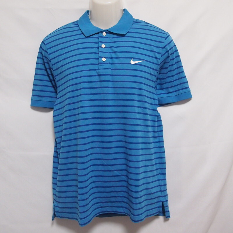 - 古着 メンズXXL NIKE/ナイキ マッチアップ ミニストライプポロ シャツ 半袖 ボタン ブルー/ボーダー 617865-435