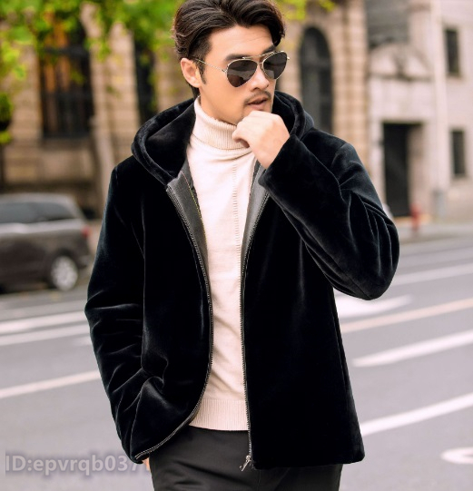 > ファージャケット◇新品 メンズ ブルゾン 無地 フード付き バイクウェア ファーコート 毛皮 フェイクファー 紳士 サイズ選択可 /2XL